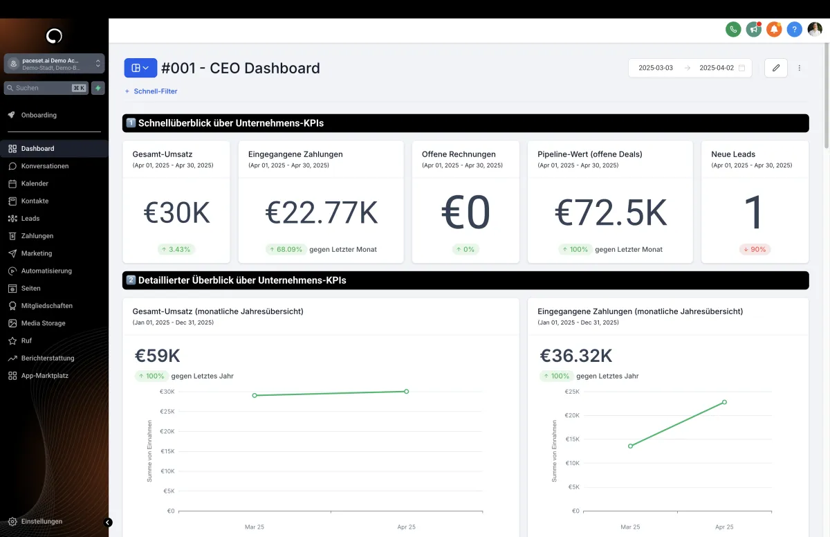 Mit PaceSet.ai bekommst du eine Plattform, die alles kann, was du brauchst, um dein Business effizienter und erfolgreicher zu machen: